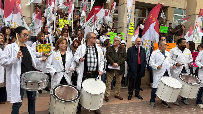 Región La semana de huelga médica y facultativa en la Región de Murcia arranca con una protesta frente a la Consejería y un seguimiento que se prevé mayor a un 60% a pesar de los servicios mínimos abusivos