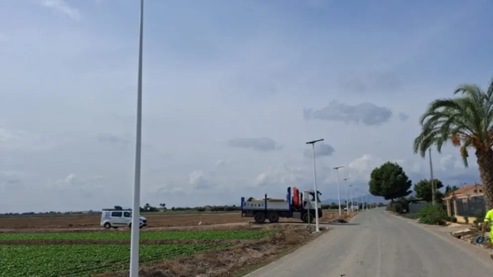Municipios y pedanías Fomento instala 17 luminarias LED con alimentación solar en la carretera RM-D3 para mejorar la seguridad vial entre Lorca y La Hoya