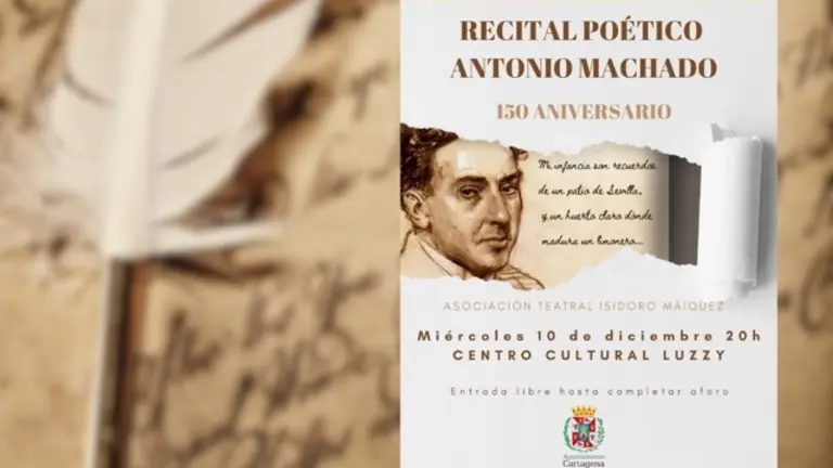 Sociedad y Cultura Cartagena homenajea este miércoles a Antonio Machado con un recital poético por el 150 aniversario de su nacimiento