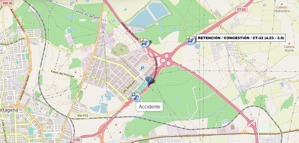 También a los vehículos de la zona del Mar Menor y La Manga que opten por rutas alternativas como, la carretera de La Unión.