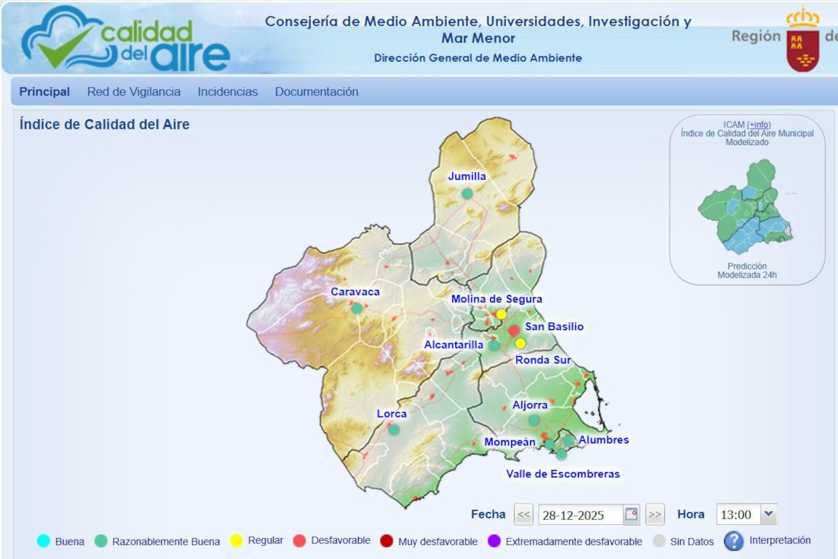 La Dirección General de Medio Ambiente de la Comunidad Autónoma de Murcia ha informado al Ayuntamiento de Cartagena de la activación este domingo 28 de diciembre del Nivel 1 Preventivo establecido en el protocolo marco de partículas PM10, en la estación de medida del Valle en Escombreras.