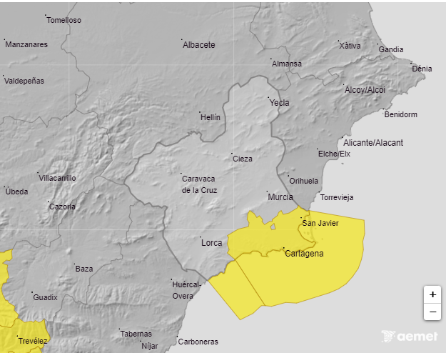 Aviso amarillo por fuertes vientos de hasta 70km/h en Campo de Cartagena-Mazarrón-Murcia