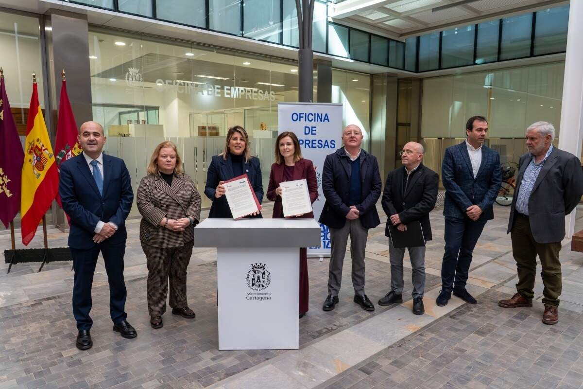 El Ayuntamiento de Cartagena y la Asociación de Constructores de Cartagena y Comarca han formalizado un convenio de colaboración con el que se pretende marcar un antes y un después en la relación entre la administración local y el sector de la construcción. El acto, celebrado en la Oficina de Empresa del Consistorio, ha contado con la presencia de la alcaldesa, los concejales de Empleo y Desarrollo Económico, y la junta directiva de la asociación, así como con representantes de COEC y la Cámara de Comercio.