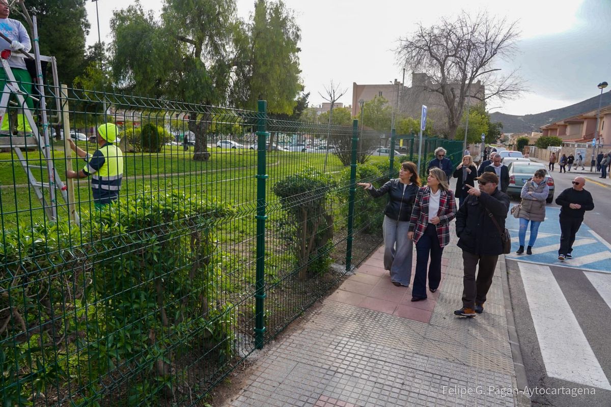 La visita también ha servido para comprobar el resultado del nuevo vallado perimetral del Parque Juan Carlos I, una reivindicación histórica del barrio. Esta obra ha incluido la creación de cuatro accesos adaptados y una importante replantación de vegetación y césped, integrando el área de juegos infantiles en un entorno cerrado y seguro.