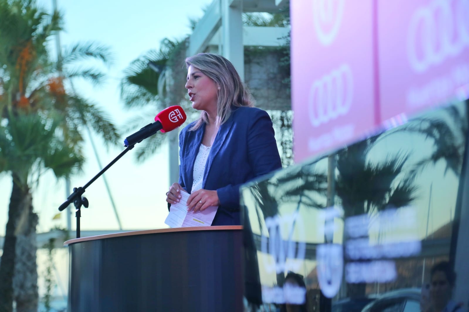 Durante su intervención, la alcaldesa manifestó su apoyo al deporte base y anunció nuevas inversiones en campos de futbol 11 y 5, así como en el Palacio de Deportes, donde juega el Jimbee