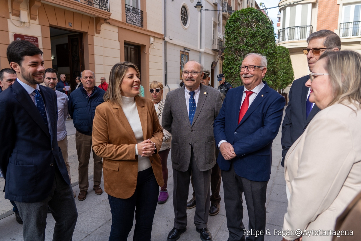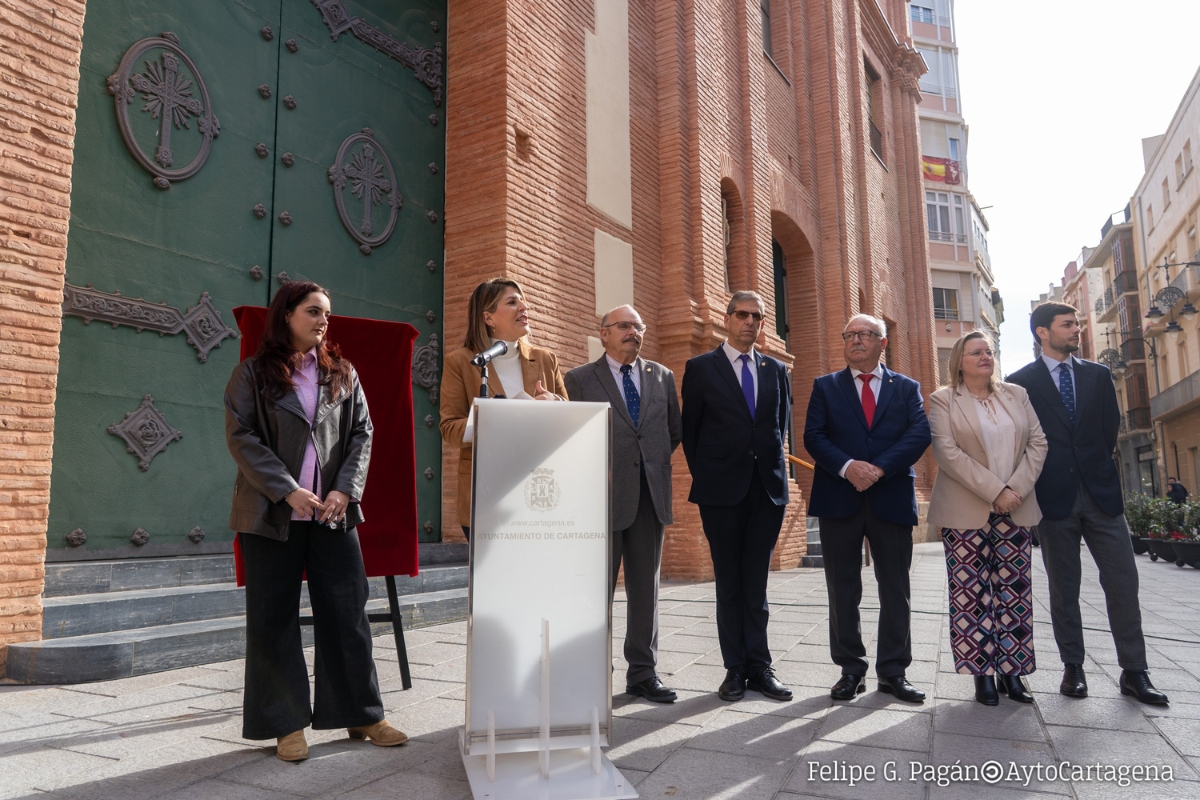 La alcaldesa de Cartagena, Noelia Arroyo, acompañada por el presidente de la Junta de Cofradías, Javier Pavía, presentó hoy la primera programación Cultural de Cuaresma de la ciudad. El acto tuvo lugar a las puertas de la Iglesia de Santa María de Gracia, un lugar emblemático para la Semana Santa cartagenera.