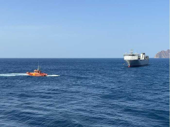 Uno de los momentos clave del ejercicio fue el despliegue de efectivos sobre el buque siniestrado, realizado con apoyo del buque militar BMP “Cartagena”, mientras que el BTL “El Camino Español” actuó como barco afectado.