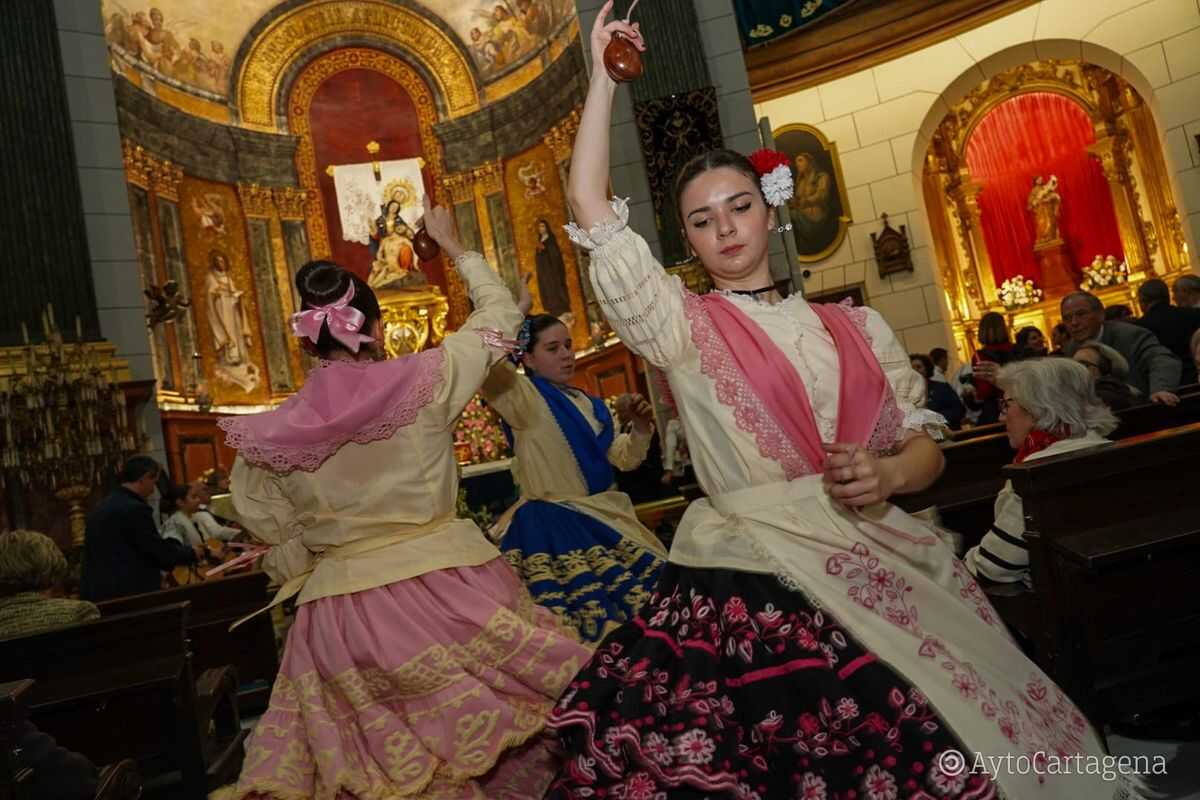 La alcaldesa de Cartagena, Noelia Arroyo, participó en la ofrenda junto a varios miembros de la Corporación Municipal. Tampoco faltó el acompañamiento musical, con bandas de cornetas y tambores, agrupaciones de coros y danzas, rondallas y cuadrillas del Campo de Cartagena.