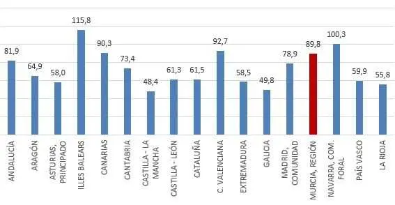 La tasa de víctimas de violencia de género por cada 10.000 mujeres fue de 74 en toda España, dos décimas más baja que la de 2024. Por encima de la media nacional se situaron Baleares, con una ratio de 115,8 por cada 10.000 mujeres; Navarra, con 100,3; Comunidad Valenciana, con 92,7; Canarias, con 90,3; Murcia, con 89,8; Andalucía, con 81,9; y Madrid, con 78,9.