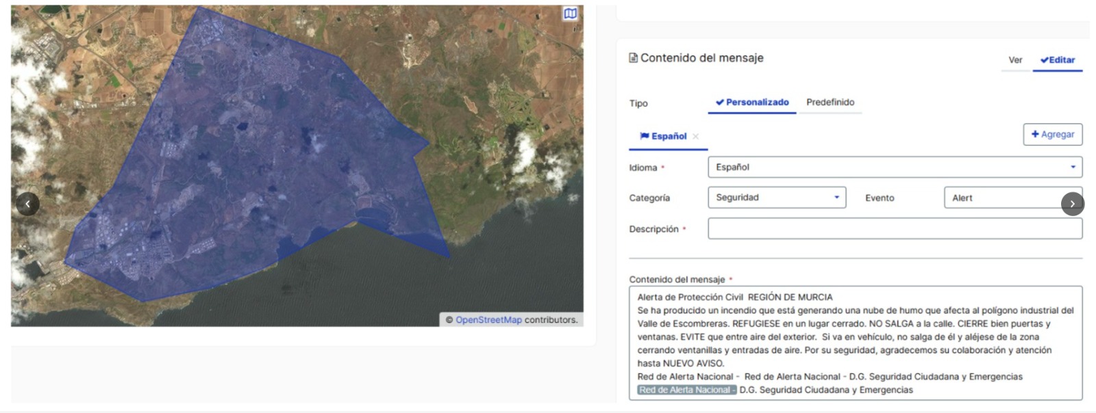 _Se ha producido un incendio que está generando una nube tóxica que afecta al polígono industrial del Valle de Escombreras. REFÚGIESE en un lugar cerrado. NO SALGA a la calle. CIERRE bien puertas y ventanas. EVITE que entre aire del exterior. Si va en vehículo, no salga de él y aléjese de la zona cerrando ventanillas y entradas de aire. Por su seguridad, agradecemos su colaboración y atención hasta NUEVO AVISO._