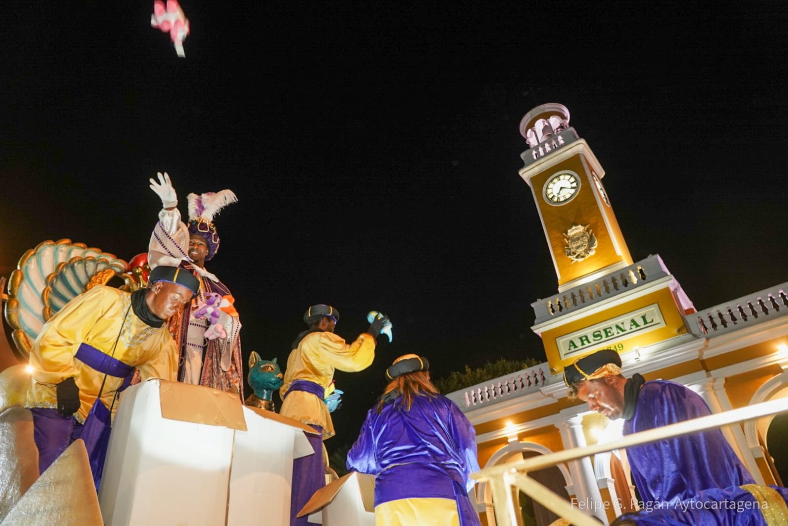 Las carrozas, diseñadas por artistas especializados, ofrecieron un recorrido temático inspirado en el cine, la magia y los mundos imaginarios, con la participación activa de asociaciones de vecinos, empresas y colectivos locales. El desfile culminó con la presencia de Sus Majestades los Reyes Magos, Melchor, Gaspar y Baltasar, cerrando una cabalgata multitudinaria que volvió a convertir Cartagena en un gran escenario festivo como antesala a la noche más esperada por pequeños y mayores, que como es tradición será la del 5 al 6 de enero.