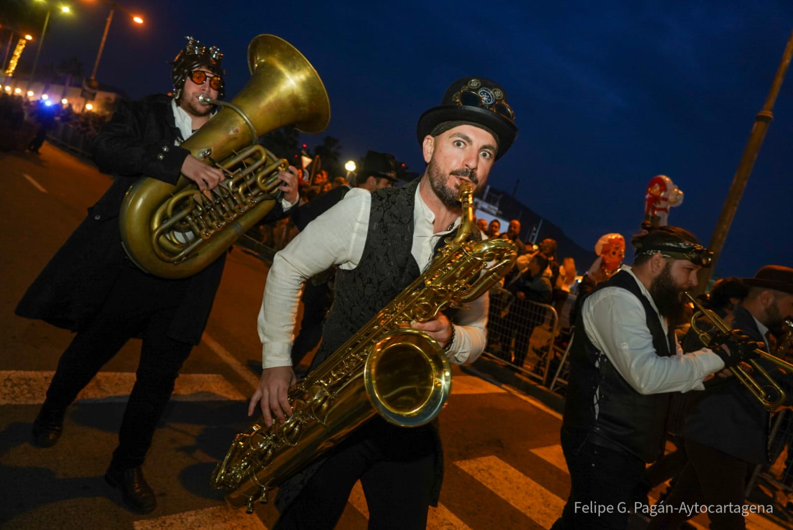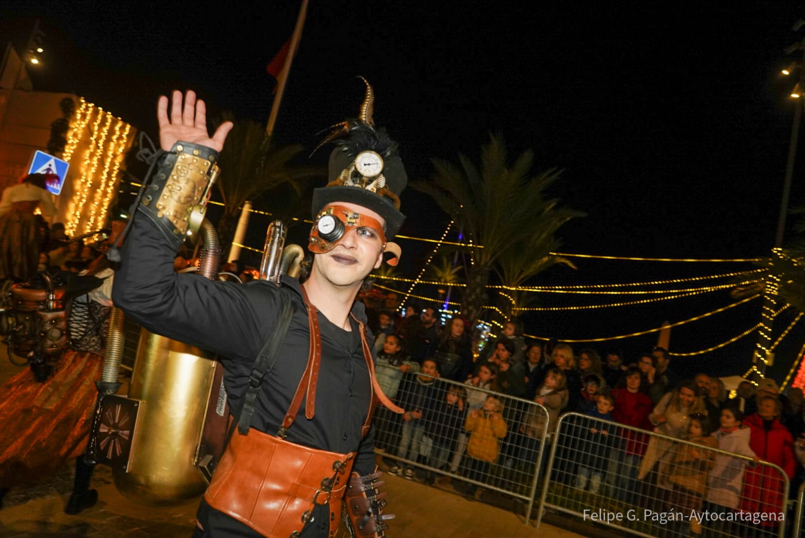 El cortejo destacó por su gran variedad de espectáculos de animación, música y teatro de calle, con propuestas pensadas para todos los públicos. Batucadas, bandas de música, charangas y compañías teatrales aportaron ritmo y dinamismo al desfile, junto a espectáculos visuales de gran formato como dragones, dinosaurios, escenas steampunk y recreaciones circenses que llenaron de fantasía las calles del centro histórico y el puerto.