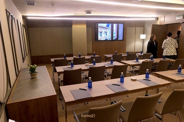 Después se inició un cóctel (amplio, variado y de calidad), durante el que esta redacción tuvo ocasión de conocer el interior de algunas instancias en una visita guiada. Todas las habitaciones son dobles, con opciones algunas de triple, y pudimos conocer el modelo estandar, la que dispone de dormitorio más sala de estar separada y las que tienen acceso a la enorme terraza, que ofrecen espectaculares vistas de la ciudad y su puerto. Además de las seis plantas superiores, el sótano ofrece espacio para congresos, reuniones de consejos de administración y celebraciones, además de dispone de gimnasio, entre otros servicios. Nos llamó la atención de que todos los espacios, incluidos los pasillos, disponen de telefonillo para contactar con recepción, que todas las habitaciones tienen cafetera y que las papeleras disponen de compartimentos distintos para facilitar el reciclaje.