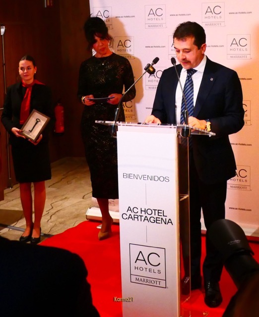 El hotel NH, ubicado junto al Palacio Consistorial de Cartagena, ha pasado a ser el hotel 109 de la cadena AC Hoteles by Marriot, habiendo comenzado a funcionar como tal hace un par de meses, tras una fuerte remodelación interna (sin alterar los elementos históricos), pero faltaba una puesta de largo oficial, que fue la que tuvo lugar anoche.