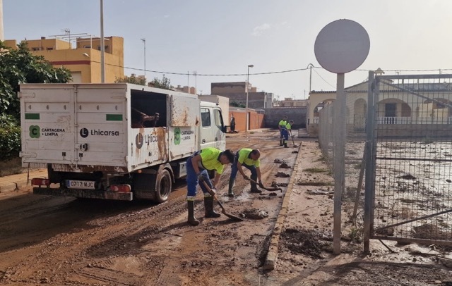 El temporal que ha traído la borrasca Alice estos pasados días al municipio de Cartagena y su comarca, con cantidades de agua importantes, hizo que los servicios de limpieza y recogida de Lhicarsa, tuvieran que emplearse a fondo en las zonas más afectadas del municipio, como El Algar, Los Nietos, Playa Honda y Mar de Cristal.