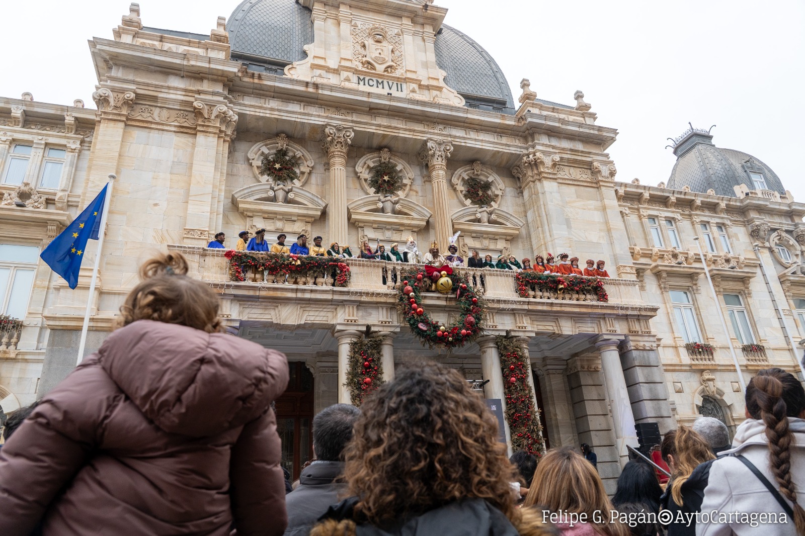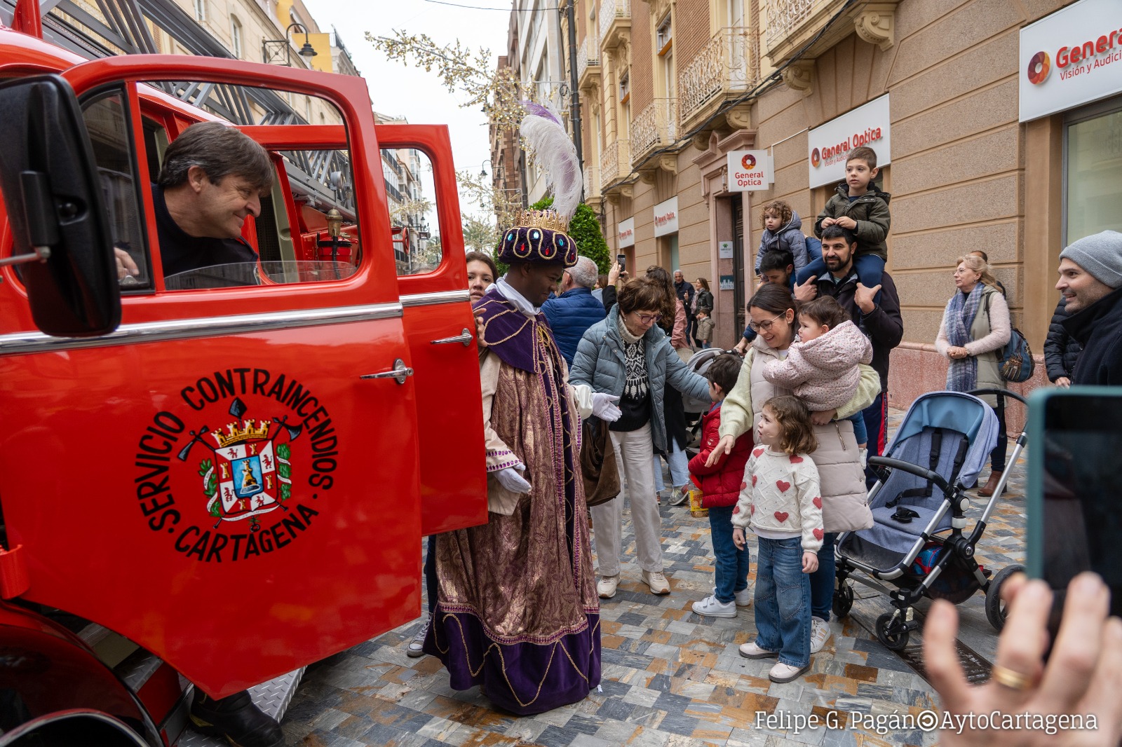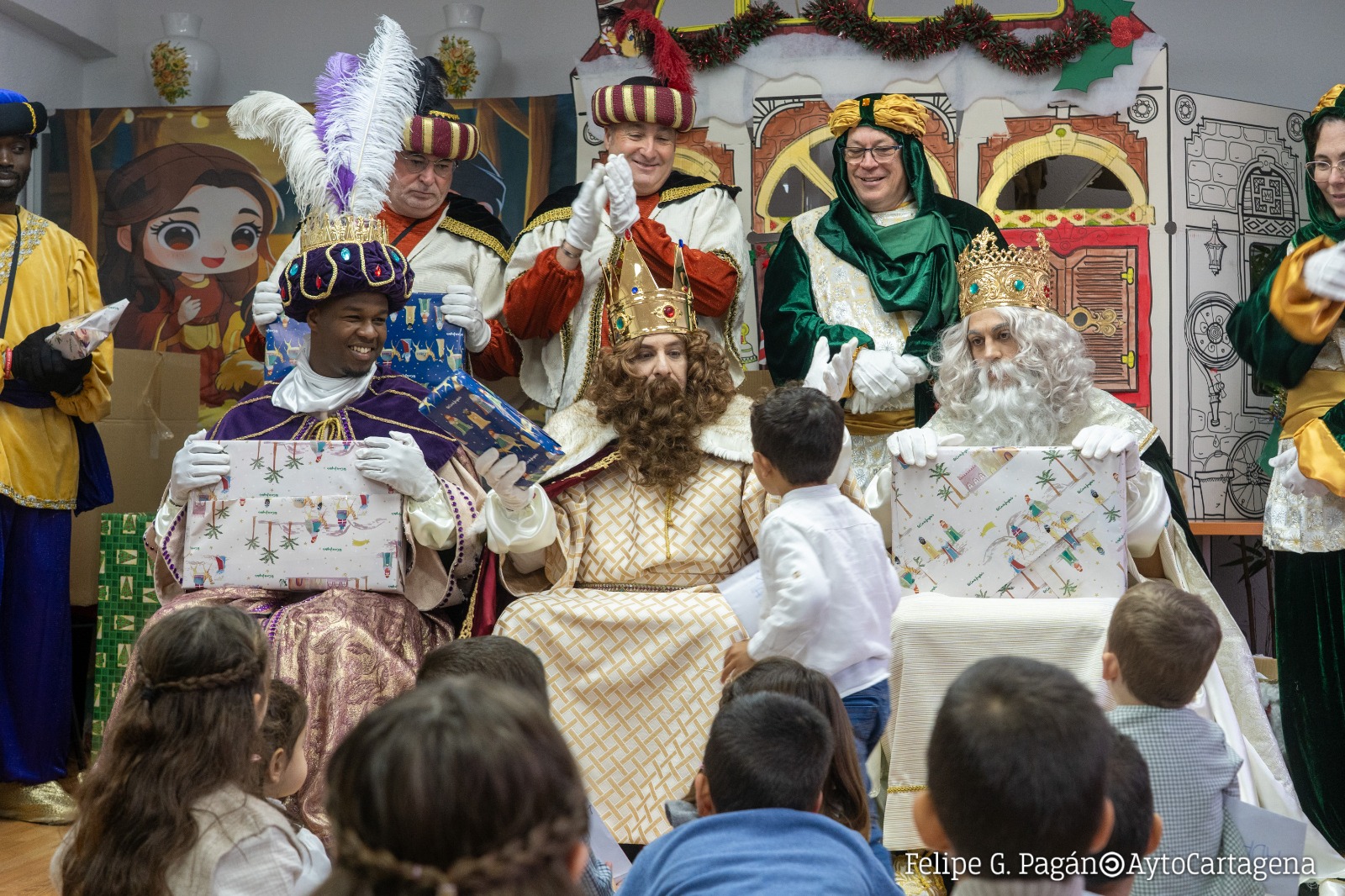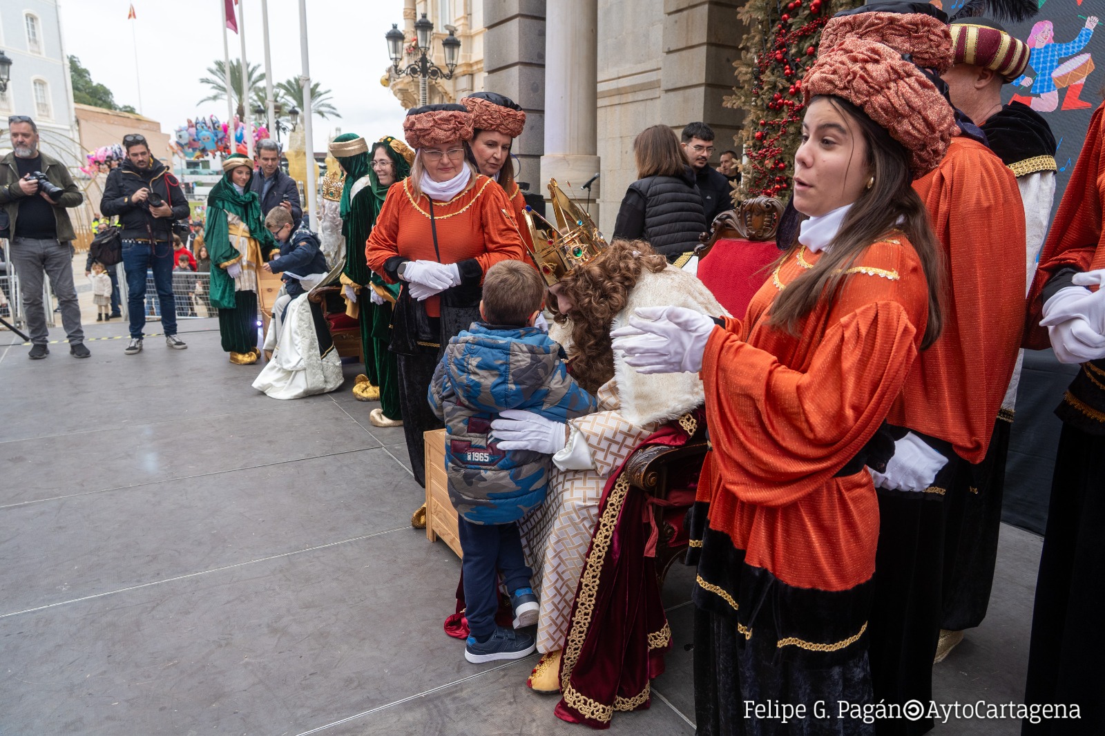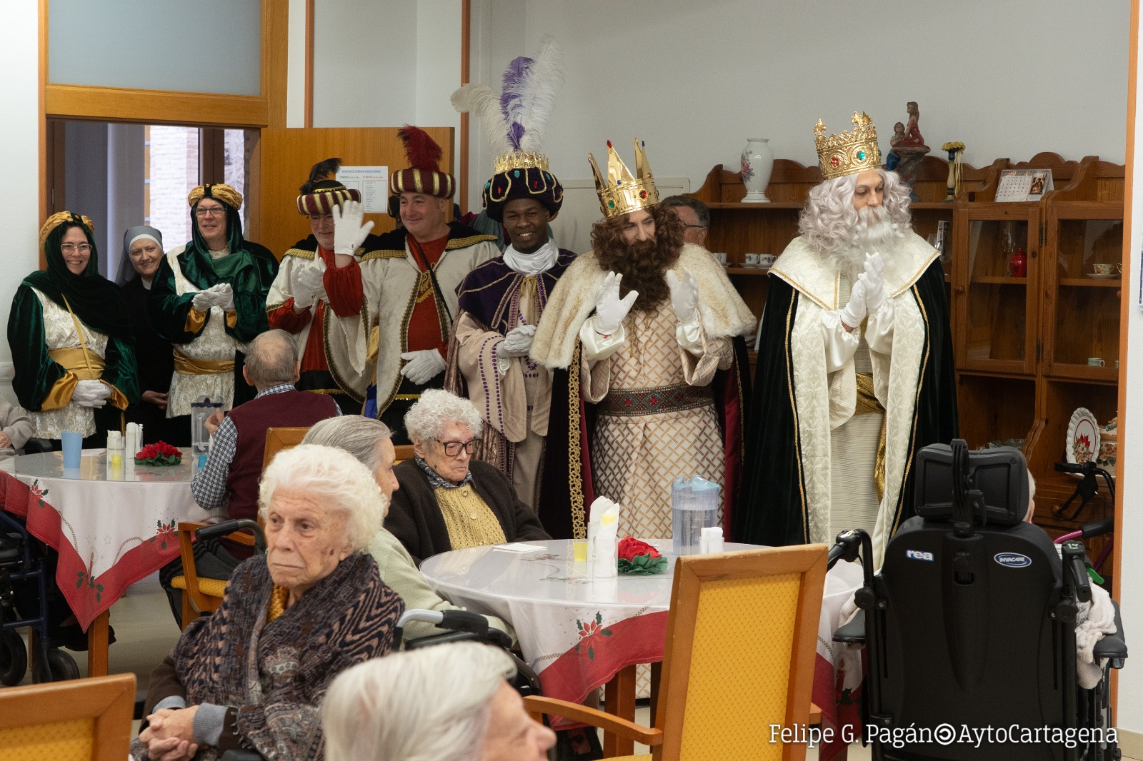 La magia de los Reyes Magos adelanta la ilusión en Cartagena, que celebra hoy sábado la Cabalgata. Melchor, Gaspara y Baltasar han recorrido este 3 de enero diferentes puntos de Cartagena, visitando a mayores y pequeños en lugares como el Asilo de Ancianos, el Hospital Santa Lucía o la Casa Cuna.