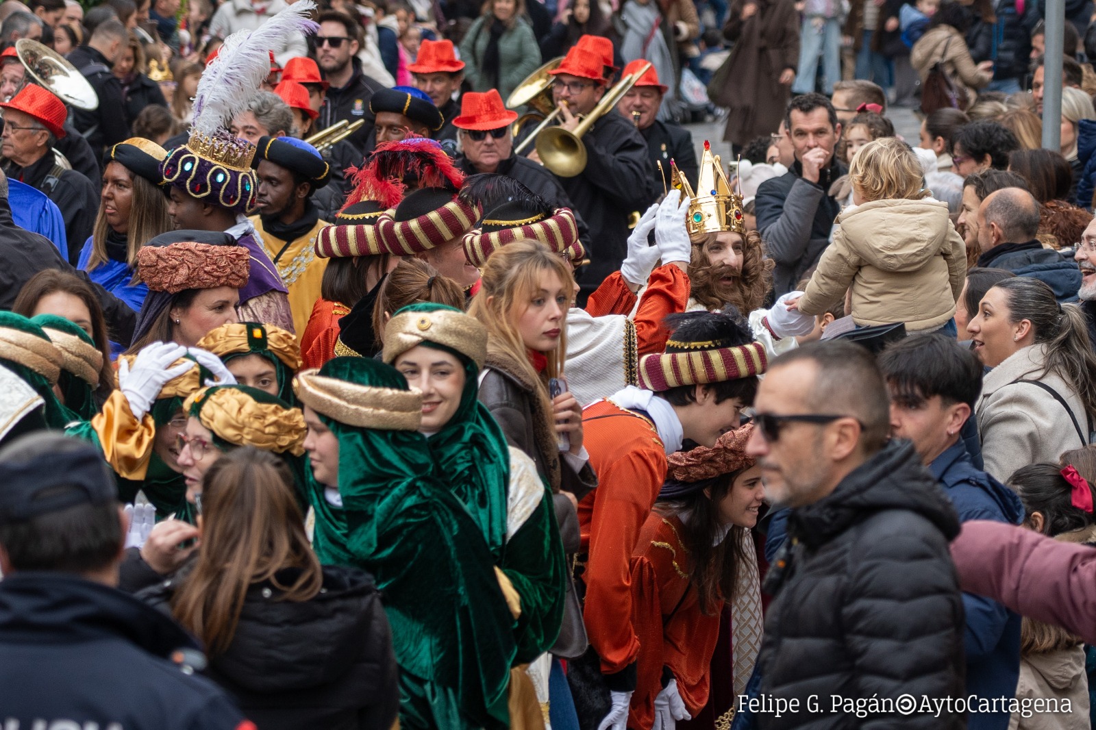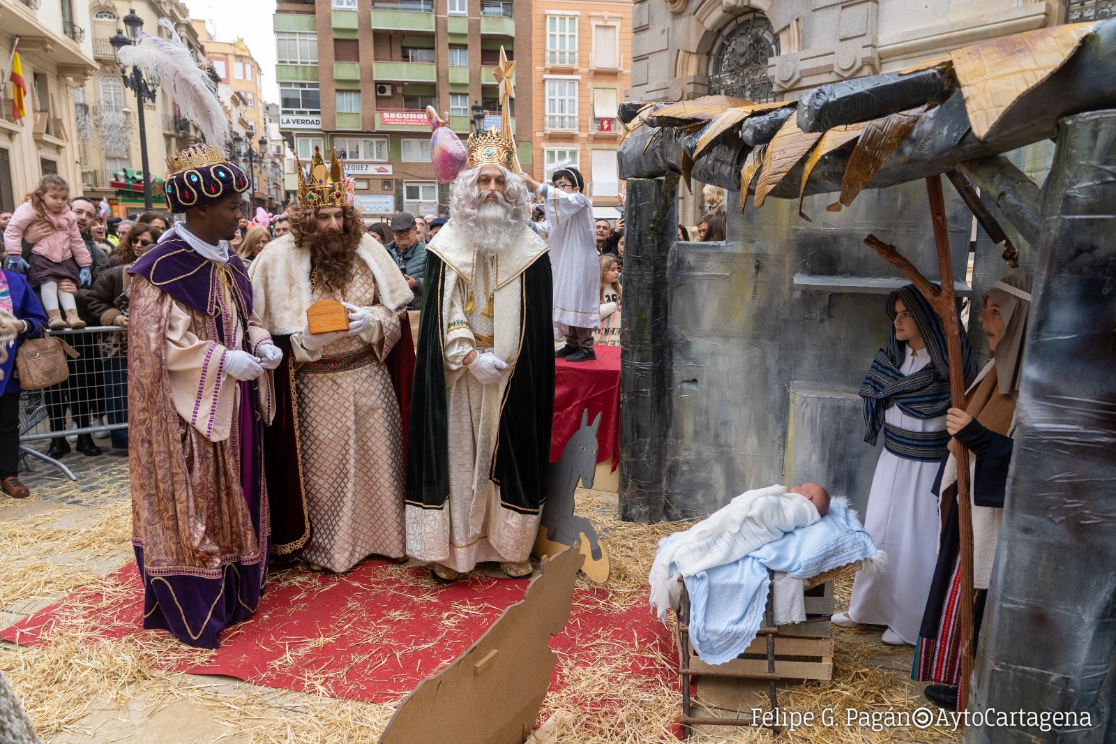 La Cabalgata de los Reyes Magos saldrá a las 18:00 horas desde la Cofradía de los Pescadores y contará con las carrozas de los Reyes Magos, que irán acompañados por otras diseñadas con elementos de luz y seda y que contarán con la participación de cuatro asociaciones de vecinos de Cartagena como son las de San Ginés, San Diego, Las Lomas de Canteras y Los Puertos de Santa Bárbara. La Cabalgata cuenta este año con el patrocinio y la participación de empresas como Repsol, Autoridad Portuaria, UCAM, Urbincasa, Ership, Inmohogares, Restaurante Eszencia, Huertas Movil Hyundai, Jimbee, Espacio Mediterráneo, El Abasto y La Isla Mágica.
