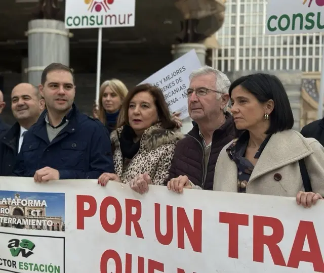 Los concejales del Grupo municipal MC Cartagena, Ricardo Segado y Enrique Pérez Abellán, junto a la secretaria de organización del partido, María José Soler, y la vicepresidenta del partido y representante de MC en el Movimiento Regional Municipalista (MRM), Esther Guzmán, han asistido este jueves a la manifestación convocada para exigir la recuperación de la conexión ferroviaria Cartagena - Chinchilla - Madrid, una línea histórica que llegó a ser la quinta más rentable de España en los años 90 y que garantizaba llegar a la capital en apenas cinco horas. “Una línea que fue suprimida en 2022, con Arroyo como alcaldesa”, ha subrayado Guzmán, “porque durante todo este tiempo tanto PP como PSOE han preferido mirar hacia otro lado”, ha añadido.