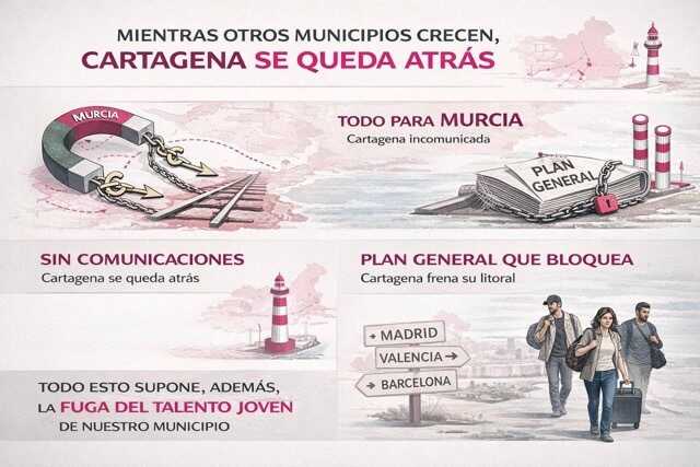 Para la formación cartagenerista, este escenario está relacionado con varias cuestiones pendientes, como la escasez de vivienda, la falta de proyectos estratégicos, el aislamiento ferroviario o las dificultades para desarrollar nuevas áreas residenciales, especialmente en el litoral.
