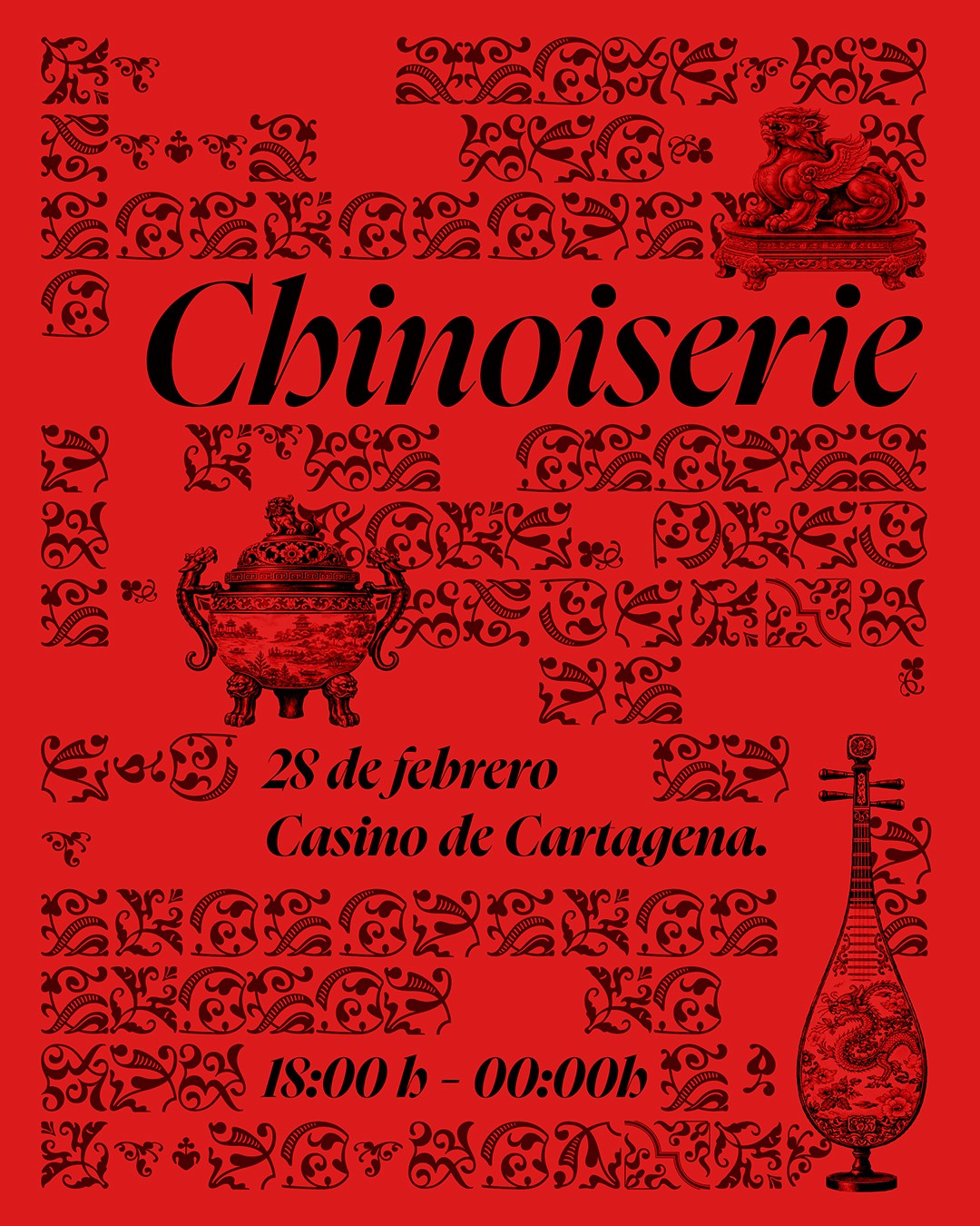 Evento audiovisual Chinoserie, de 18:00 a 00:00 horas, en el Casino de Cartagena. Esta propuesta surge por la confluencia en el calendario del Año Nuevo Chino y el Carnaval. Se trata de un evento audiovisual en colaboración con un grupo de socios del Casino de Cartagena, inspirado en el imaginario cultural y estético de Oriente, no entendida como copia literal, sino como el diálogo que Occidente mantuvo (y mantiene) a través del arte, la decoración, el cine y la música. Habrá espectáculos de acrobacias e instalaciones, de acceso gratuito, y una sesión DJ, con entrada a tres euros.