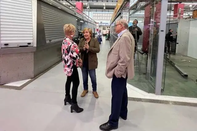 La concejala de Comercio, Hostelería y Consumo, Belén Romero, visitó este miércoles el inicio de las obras junto al presidente de la Asociación de Vendedores del Mercado, José García, y varios técnicos municipales.