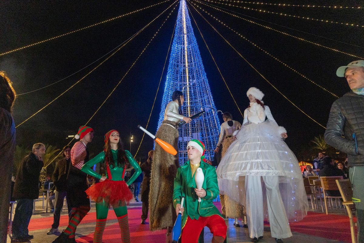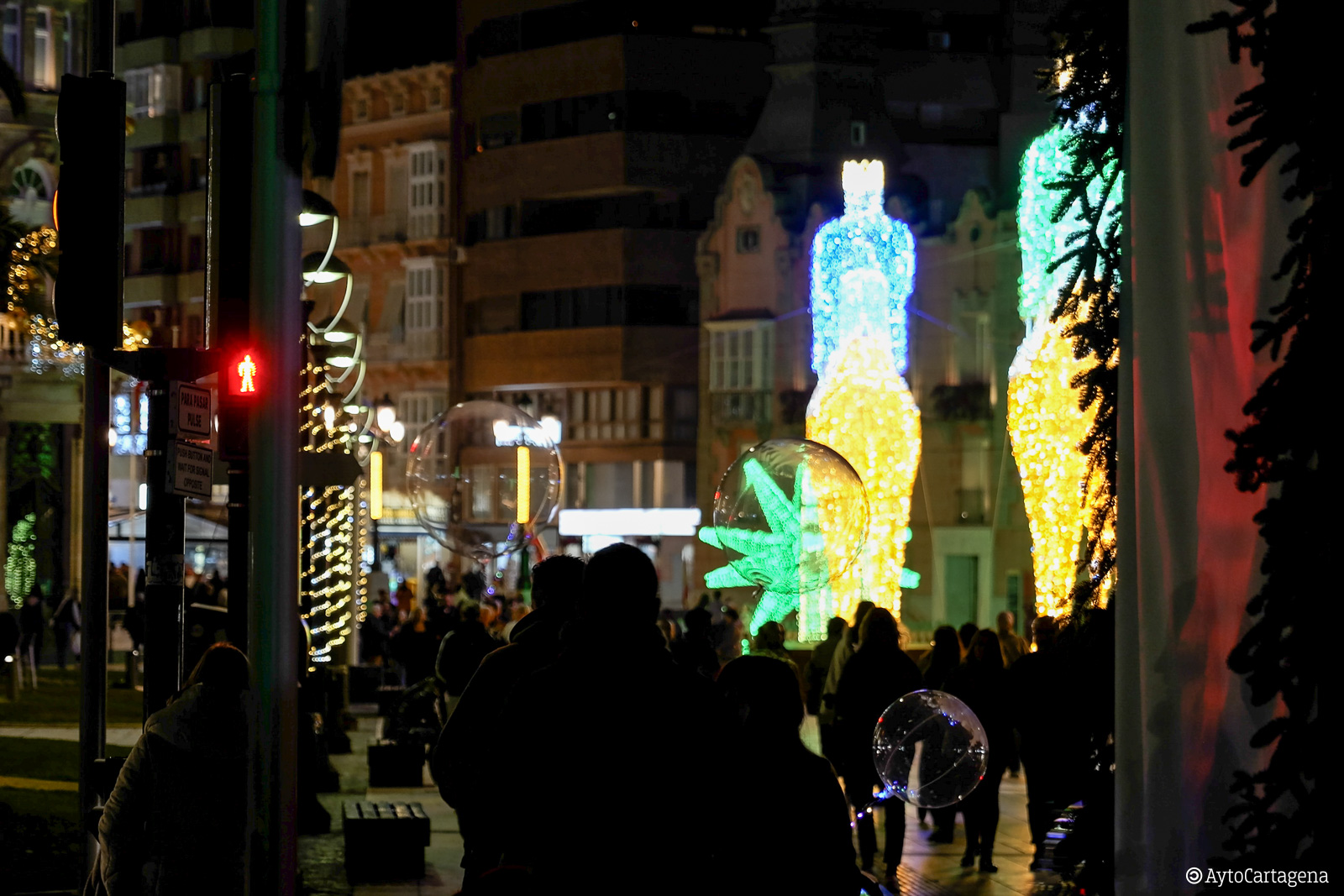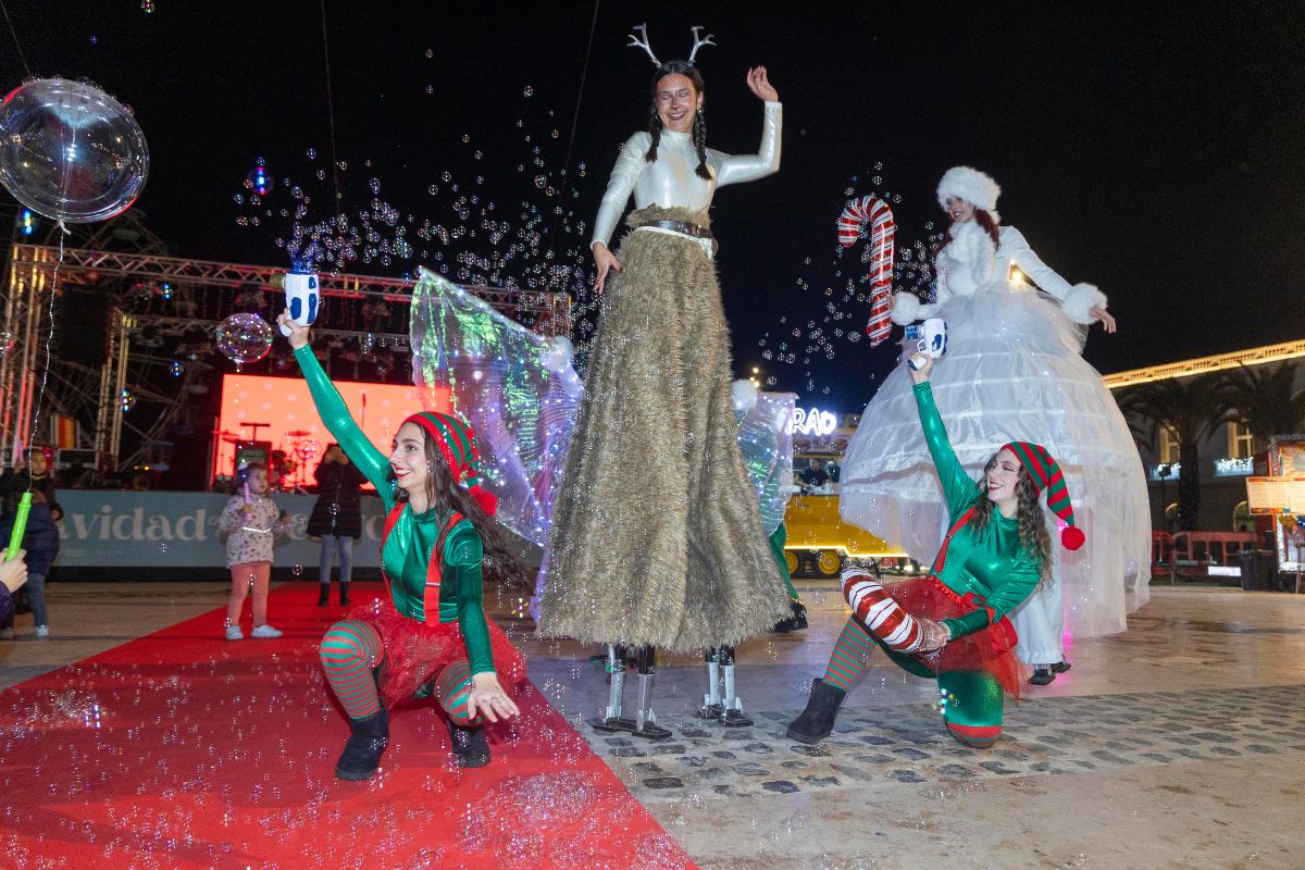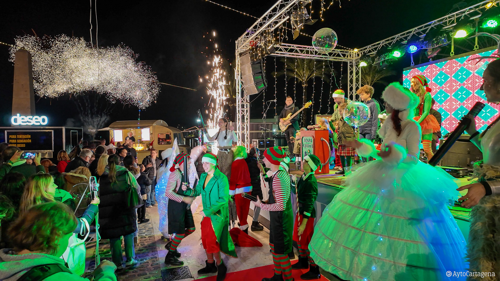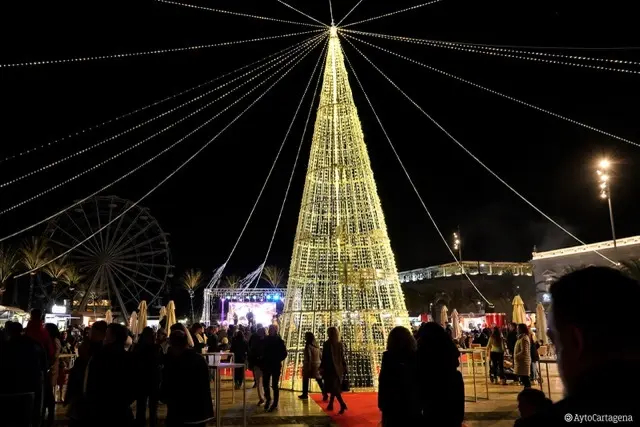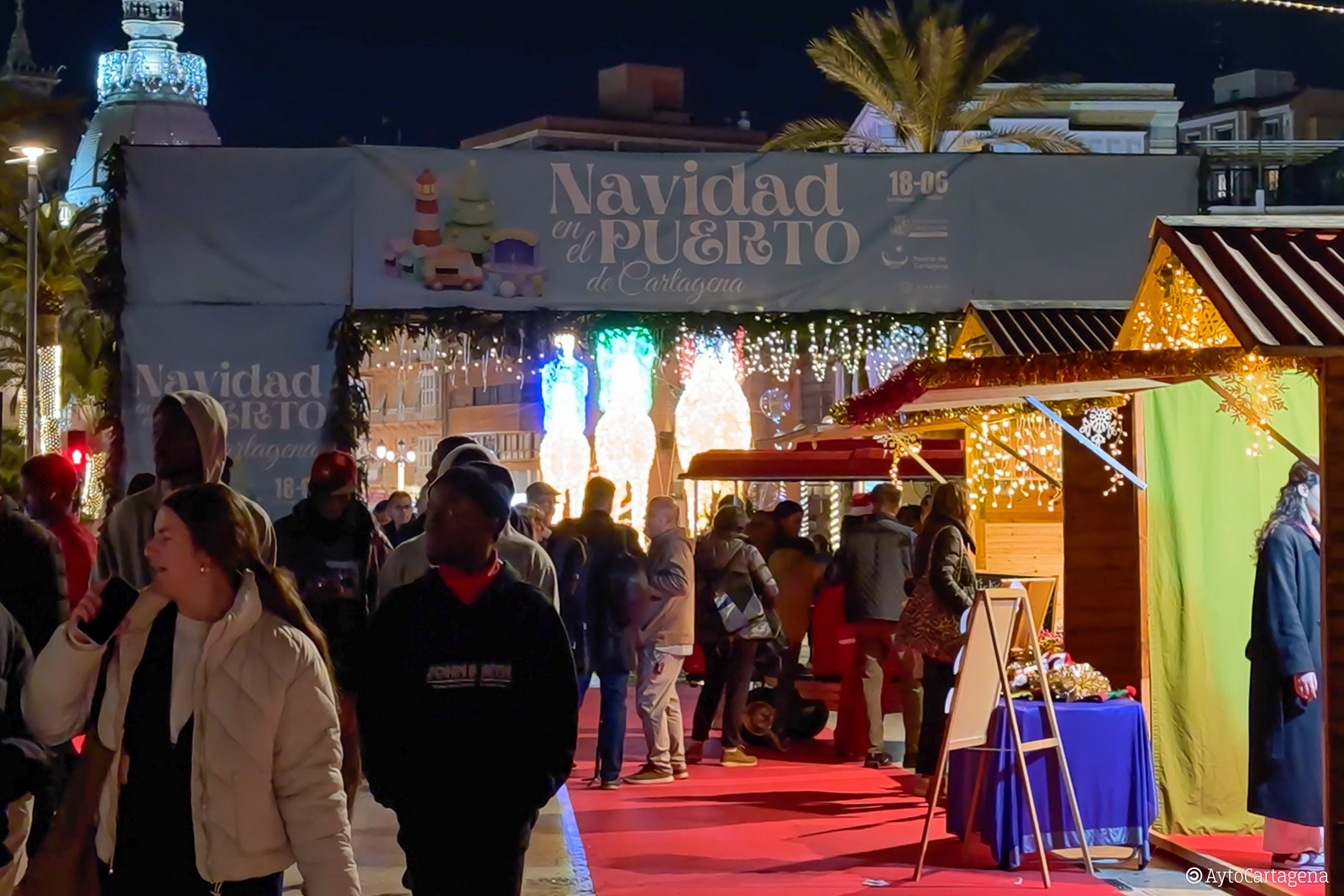 El Puerto de Cartagena enciende su Navidad y abre su espacio ubicado en la explanada ubicada en el paseo Alfonso XII, que ha sido inaugurado este jueves 18 de diciembre por el presidente de la Autoridad Portuaria, Pedro Pablo Hernández y el concejal delegado de Cultura, Ignacio Jáudenes. El recinto se podrá visitar hasta el próximo 6 de enero y contará con actuaciones musicales, actividades infantiles y un mercado gastronómico.