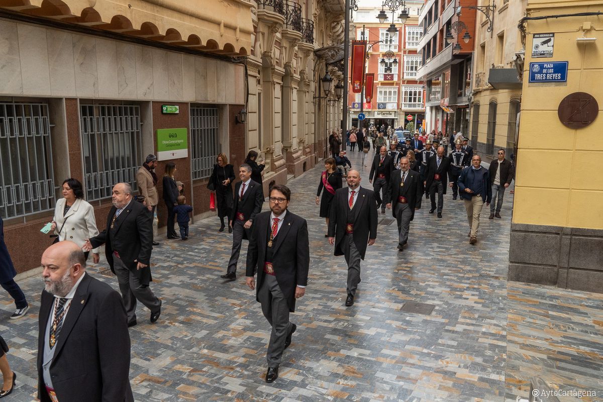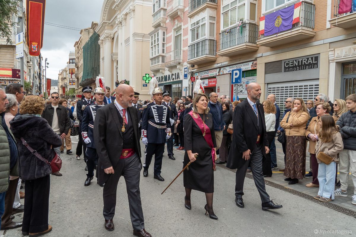 La alcaldesa destacó que la Semana Santa en España comienza en Cartagena, en referencia a la procesión del Cristo del Socorro y con ella “empiezan los días en los que nos sentimos más cartageneros”, fechas que son jornadas de reencuentro, tradición y familia, y recordó también a quienes viven esos días lejos de Cartagena.