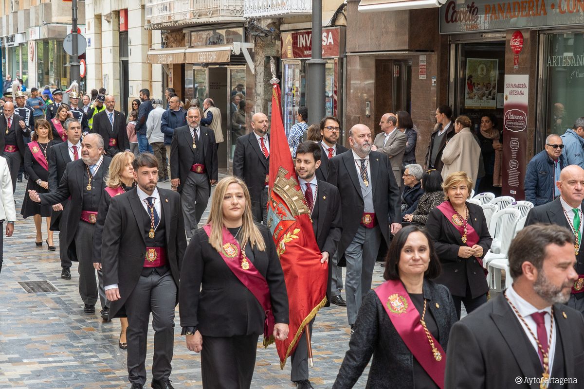 La ceremonia, oficiada por el obispo de la Diócesis de Cartagena, José Manuel Lorca Planes, concluyó con la entrega de la Onza de Oro al Santo y Real Hospital de Caridad, que preside José Vera, con una aportación municipal de 50.000 euros, dentro de una de las tradiciones más antiguas del calendario institucional y religioso de Cartagena.