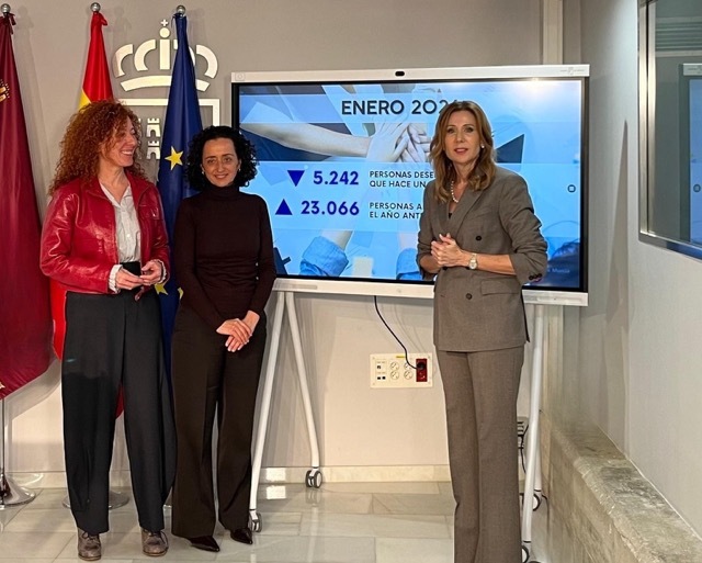 03.02.2026 El mercado laboral ha iniciado el año en la Región de Murcia con datos históricos positivos, situando el número total de personas desempleadas en 74.832, la cifra más baja para un mes de enero desde 2008. En términos interanuales, el desempleo ha descendido en 5.242 personas, lo que supone una reducción del 6,55 por ciento respecto a enero del año pasado, “consolidando una tendencia positiva en la evolución del empleo y reforzando la estrategia del Gobierno regional en materia de empleo y formación”, destacó la consejera de Empresa, Empleo y Economía Social, Marisa López Aragón.