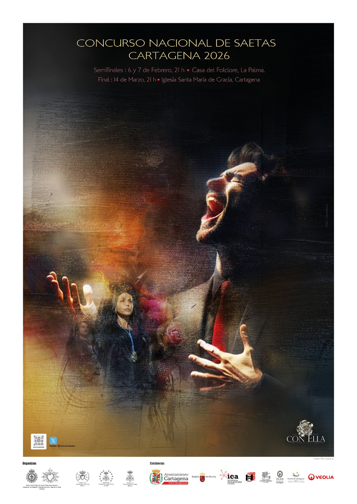 Semana Santa. Final del XII Concurso Nacional de Saetas de Cartagena, a las 21:00 horas, en la iglesia de Santa María de Gracia. El certamen organizado por la Agrupación de Portapasos de la Virgen de la Piedad y la Cofradía Marraja, con la colaboración del Ayuntamiento, celebra su fase final en la que los cantaores Maribel Castillo (Alcantarilla, Murcia), Rosario Campos Jaime (Periana, Málaga), Susana Romero Alonso (Vejer de la Frontera, Cádiz) y Manuel Ortiz Muñoz (Mairena del Alcor, Sevilla) competirán por conseguir el trofeo Con Alma y los 6.000 euros de premio. Entrada libre, hasta completar aforo.