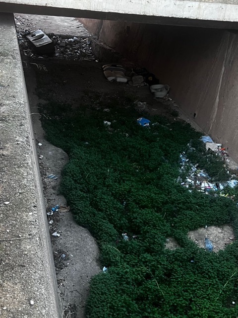 La basura y la maleza que se acumulan en el cauce se extienden hasta el carril bici y el acceso peatonal al hospital por la dejadez del Gobierno de Arroyo