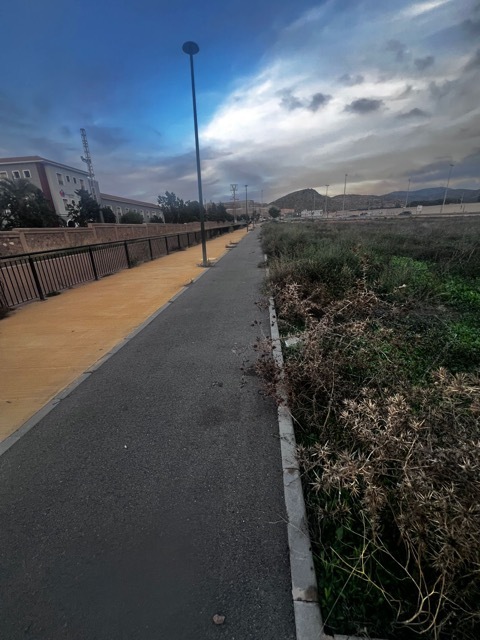 Además, la situación en la que se encuentran el carril bici y el acceso peatonal que unen el barrio con el Hospital Universitario de Santa Lucía no es mucho mejor a pesar de que se construyeron hace poco tiempo. La maleza invade algunos tramos del carril bici, en otros hay grandes socavones que lo hacen intransitable, a lo que se suma el mal estado del mobiliario urbano, con bancos rotos y papeleras inexistentes.