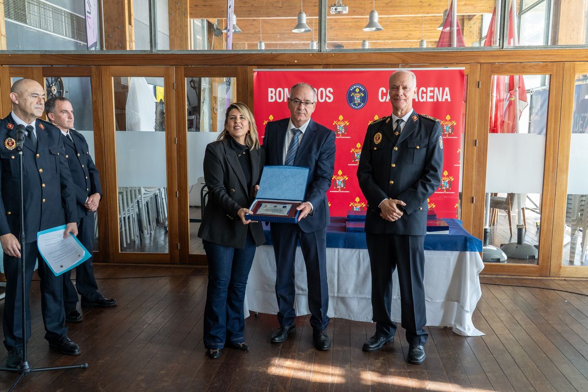 La jornada ha servido para agradecer la labor del personal municipal, así como la colaboración de entidades y particulares que trabajan activamente con los efectivos de emergencias. Así, la alcaldesa ha entregado una figura de reconocimiento a cinco bomberos que se jubilan tras acumular más de treinta años de servicio. Entre los homenajeados se encontraba el exconcejal de Seguridad Vicente Balibrea, cuya etapa al frente del área impulsó la modernización del servicio y la creación de nuevas estructuras de coordinación y planes municipales de emergencia. Los colectivos reconocidos fueron la UCAM, Salzillo Servicios, CIFP Hespérides y la Autoridad Portuaria de Cartagena; todos ellos por su colaboración en el Encuentro Nacional de Rescate en Accidentes de Tráfico celebrado en Cartagena el pasado año.