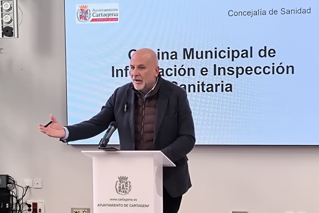 Cartagena, 22 DE ENERO DE 2026. - El concejal de Litoral y Sanidad y portavoz del Grupo Municipal VOX, Gonzalo López Pretel, ha presentado la puesta en marcha de la Oficina Municipal de Información e Inspección Sanitaria, una iniciativa impulsada desde la concejalía que él dirige con el objetivo de reforzar el cumplimiento de la normativa sanitaria, proteger la salud pública y garantizar la igualdad ante la ley en todo el municipio.