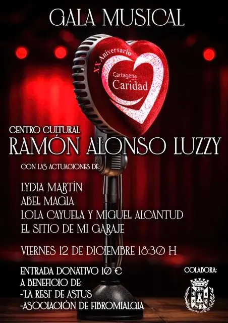 El Centro Cultural Ramon Alonso Luzzy, acogerá este viernes 12 de diciembre, a las 18,30 horas, una Gala Musical con la que Cartagena por la Caridad sigue celebrando el XX aniversario de su nacimiento.