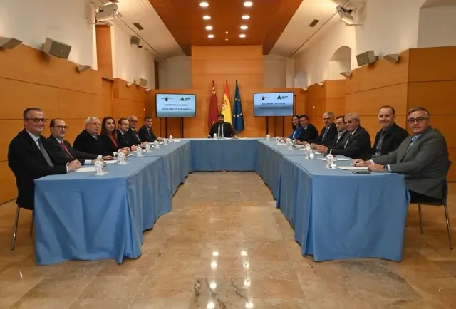 López Miras se reúne con el nuevo presidente de esta asociación empresarial, Juan Antonio López Abadía, y con su junta directiva