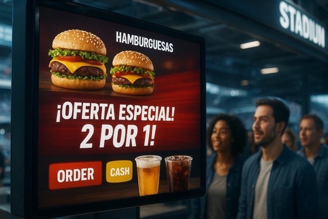 Además, estas pantallas ayudan a que los aficionados no pierdan jugadas mientras compran comida o se desplazan. Retransmitir el partido en las zonas de concesiones mantiene la atención e invita a los fans a permanecer más tiempo en áreas comerciales, lo que aumenta las posibilidades de venta.