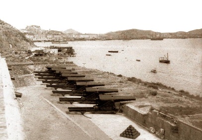 -1873. El Cantón. Vuelve a salir la escuadra cantonal, esta vez al mando de Colau, sin perder la formación de rombo. A la una de la tarde dan vista a la escuadra centralista y avanzan a su encuentro. Ante la imponente actitud de los cantonales, el Almirante Lobo, a bordo de la "Vitoria" vira con rumbo a poniente y tras él toda la escuadra centralista. No paran de navegar hasta que llegan a Gibraltar. Los buques cantonales quedan unas horas fuera del puerto hasta que por fin deciden entrar, siendo recibidos por la población con muestras de entusiasmo.