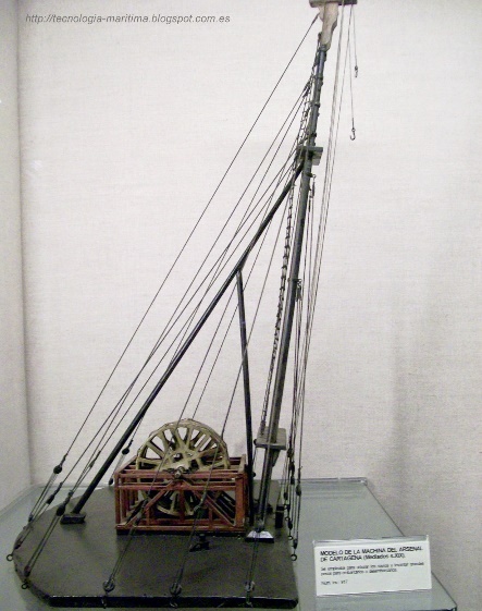 -1771. Se enarbola en el Arsenal de Cartagena una nueva "machina" de 36 pies más de altura que la anterior, para arbolar mástiles en los barcos, empleando en la operación 17 aparejos y 2.000 hombres.