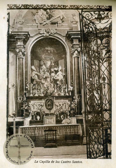 -1755. Una vez terminada la construcción de la capilla de los Cuatro Santos y Virgen del Rosell de la Catedral Antigua, son llevadas en procesión a dicha capilla las imágenes de los Cuatro Santos, esculpidas por Salzillo.