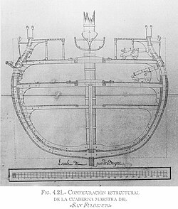 Configuración estructural de la cuaderna maestra del navío San Fulgencio.