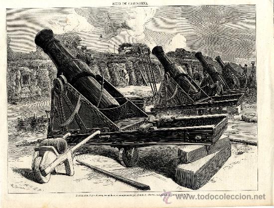-1873. El Cantón. Las fuerzas sitiadoras de Cartagena han intentado cañonear la plaza desde el molino derribado de los Camachos, pero los proyectiles no han rebasado el llamado huerto de Galín. La plaza responde con sus cañones.