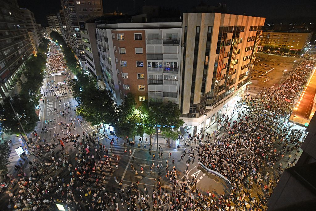 La protesta ha recorrido el centro de Murcia desde sus dos puntos de partida, la sede del Ejecutivo regional en el Palacio de San Esteban y la Delegación del Gobierno Central en la avenida Teniente Flomesta, hasta la Consejería de Agua y Medio Ambiente en Ronda de Levante. Las principales demandas que se han podido escuchar estaban vinculadas al cumplimiento de las leyes en vigor y a la demanda, muy generalizada, de un diálogo real y productivo entre el Gobierno de España y la Comunidad para salvar la laguna salada.