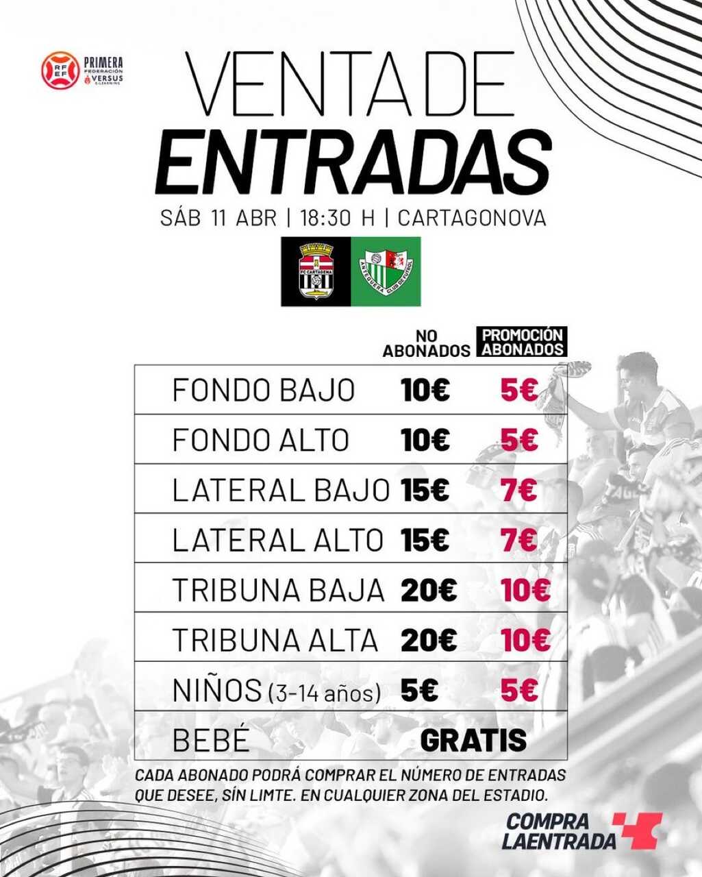 Para facilitar la asistencia, el Cartagena ha lanzado una promoción especial para sus abonados. Además de tener incluido el acceso gratuito al partido, cada socio podrá comprar tantas entradas como desee, sin límite y en cualquier zona del estadio, con un descuento del 50%.