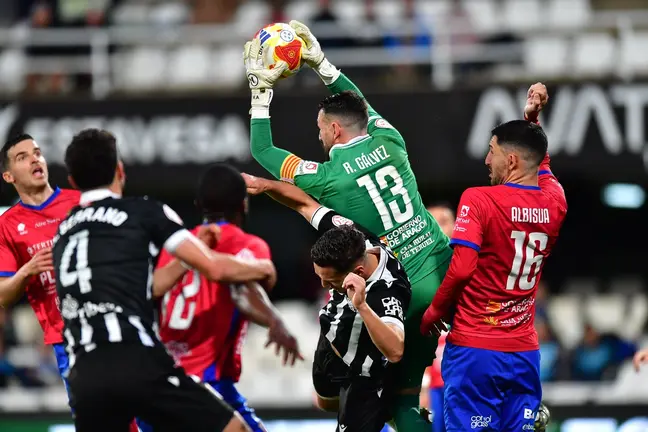 En el 67 nueva ocasión clarísima del Cartagena, centro por la izquierda de Kevin y Chiki en el segundo poste remataba caía a bocajarro y Rubén Gálvez de nuevo en una extraordinaria salvaba otra clara ocasión de gol