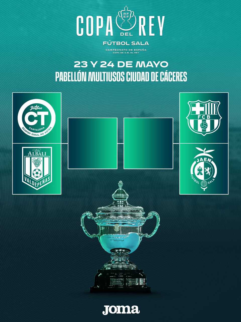 Los cuatro equipos clasificados lucharán por el título en una Final Four llena de intensidad. Por un lado del cuadro se enfrentarán Jimbee Cartagena y Viña Albali Valdepeñas. En la otra semifinal medirán sus fuerzas FC Barcelona Fútbol Sala y Jaén Paraíso Interior.