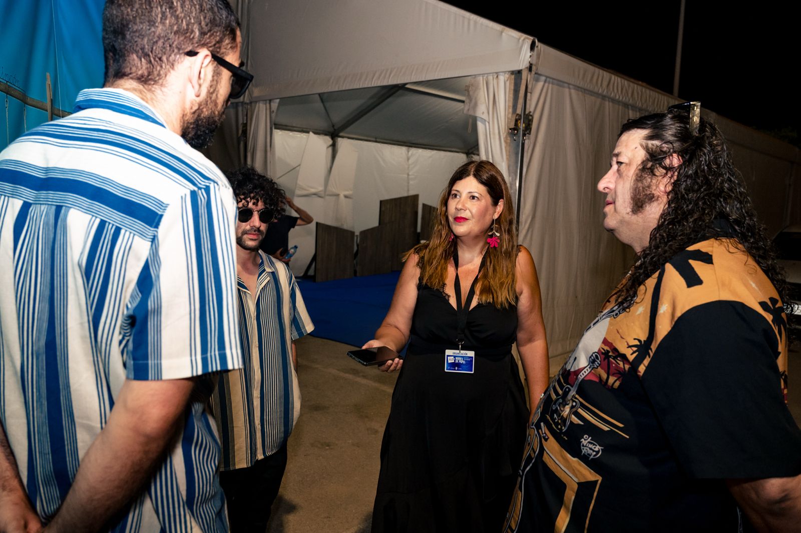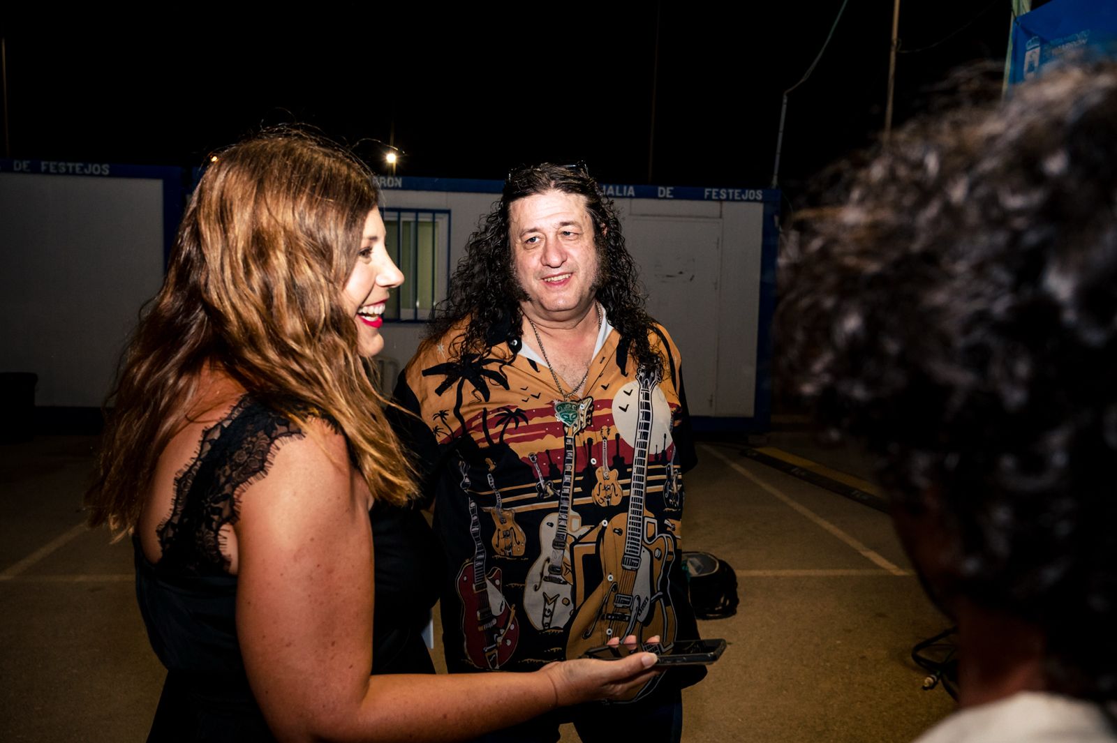 ¡Y no venían solos! Santiago Campillo ya estaba en su camerino. Asomé la cabeza y le saludé. Allí estaba él, con ese pelo ondulado y su camisa que no pasaba desapercibida. ¡Cuántas veces le habré escuchado hacer magia con sus guitarras! Tenemos amigos comunes, y escucharle siempre es un lujo.
