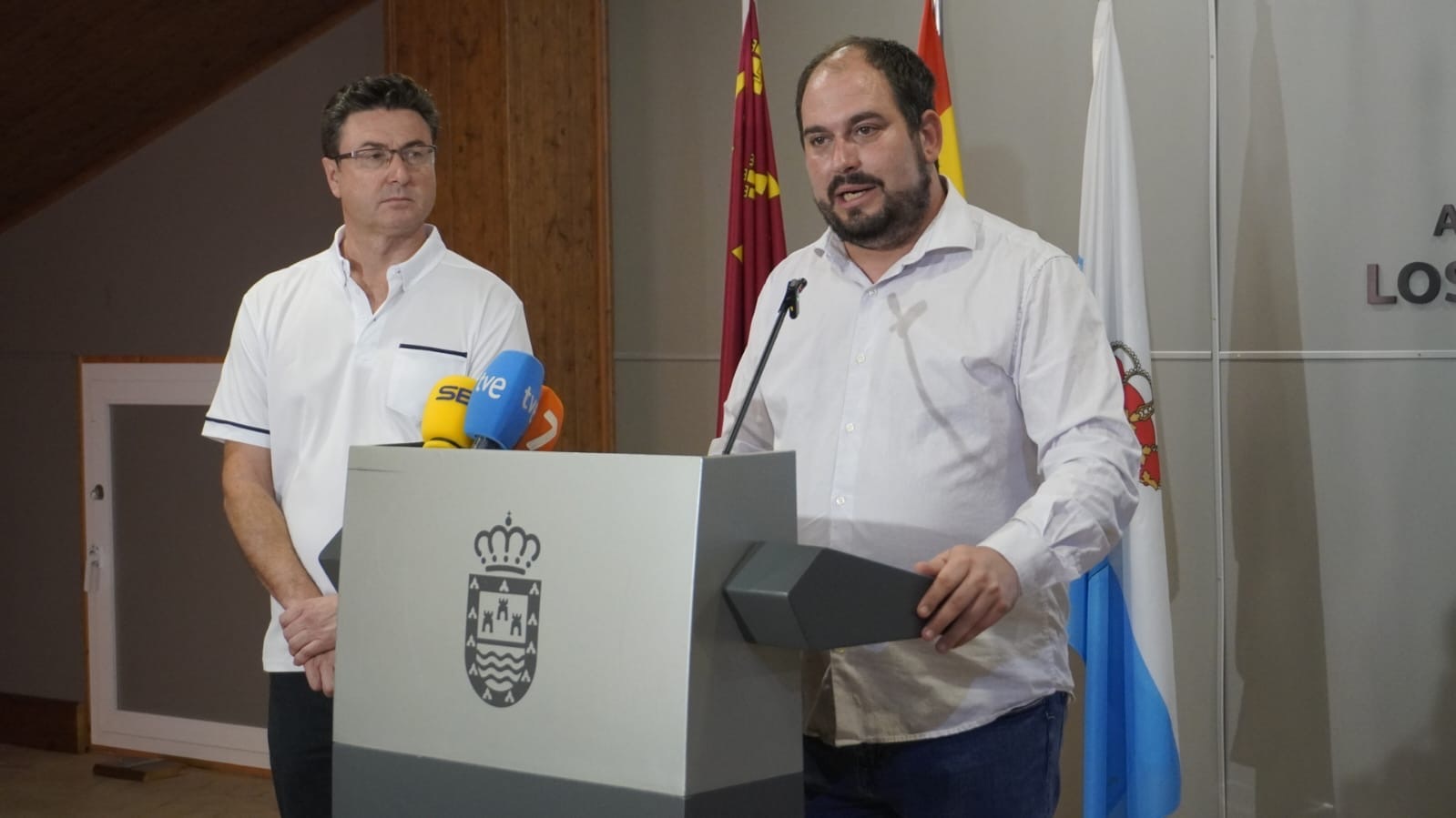 El alcalde de Los Alcázares, Mario Pérez Cervera, ha comparecido este martes ante los medios de comunicación para realizar un balance de los efectos del paso de la tormenta Alice por el municipio y analizar las causas que agravan el riesgo de inundación en Los Alcázares.