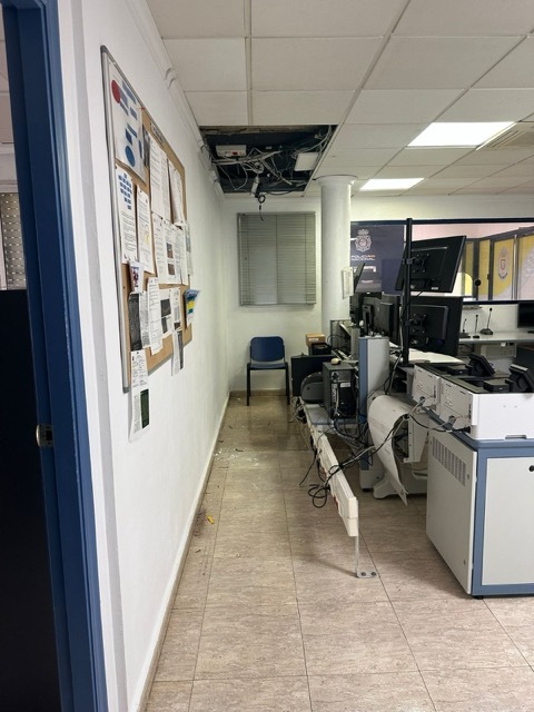 El pasado 26 de octubre se produjo un desprendimiento parcial del falso techo de la Sala de Operadores del 112, a consecuencia de esto una operadora ha resultado herida leve, al golpearle en la cabeza una de las placas de escayola del techo. Es un edificio con medio siglo de vida, unas instalaciones que en principio iban a ser provisionales y que siguen utilizándose a pesar de su mal estado.