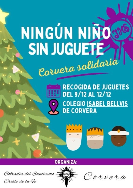 La Cofradía del Santísimo Cristo de la Fe ha puesto en marcha una campaña solidaria destinada a que ningún niño del pueblo se quede sin juguete estas Navidades. La iniciativa, bajo el lema “Ningún niño sin juguete – Corvera Solidaria”, busca reunir juguetes nuevos o usados en buen estado para destinarlos a las familias con menos recursos.